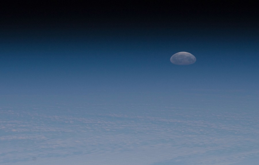 Read moreThe International Space Station (top left) flies past the moon, as seen from Houston, Texas, on January 4, 2012. The station was flying in an orbit at 390 km (242 miles) with six astronauts aboard. #