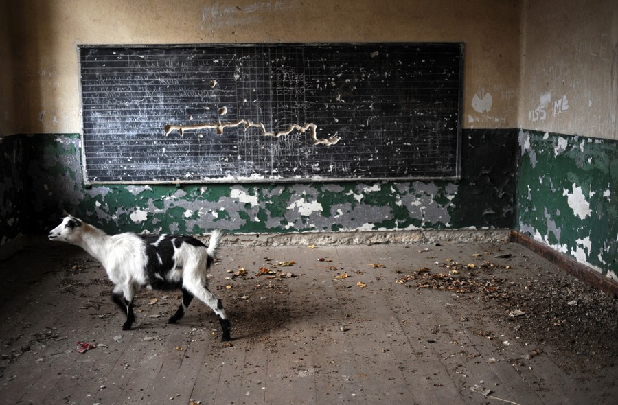 Read moreA goat walks through a deserted school classroom in the village of Voynitsa, some 100 kms (60 miles) north of the capital Sofia, at the heart of Bulgaria's northwestern region, on December 6, 2011. The bare fields, the empty roads, the ruined houses and the shuttered schools say it all. Welcome to Bulgaria's rural northwest, officially the poorest region in the European Union. In the 1970s and 1980s, the region saw massive industrialization, making goods solely for the communist-era Comecon market. But when the Iron Curtain fell 20 years ago, the factories closed. #