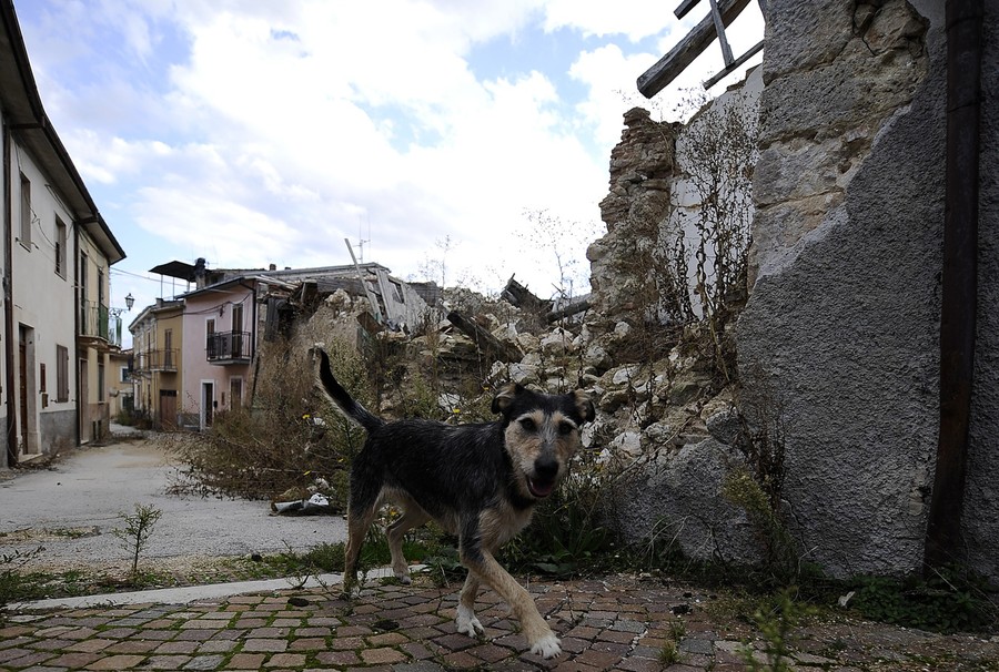 Read moreA stray dog walks in the Abruzzo region village of Villa Sant'Angelo's main square on October 20, 2010. 17 of the 450 inhabitants of Villa Sant'Angelo were killed by an earthquake that hit the region on April 6, 2009. #