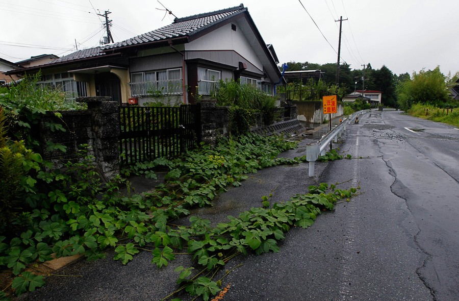 Read moreIvy grows over a street in Tomioka town, Fukushima, northeastern Japan, on August 19, 2011. Vines creep across Tomioka's empty streets, its prim gardens overgrown with waist-high weeds and meadow flowers. Dead cows rot where they were left to starve in their pens. Chicken coops writhe with maggots, a sickening stench hanging in the air in this nuclear no-man's land poisoned by radiation from a disaster-battered power plant. #