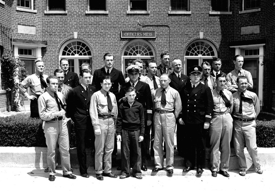 Read moreSurviving members of the crew aboard the ill-fated German zeppelin Hindenburg are photographed at the Naval Air station in Lakehurst, New Jersey, on May 7, 1937. Rudolph Sauter, chief engineer, is at center wearing white cap; behind him is Heinrich Kubis, a steward; Heinrich Bauer, watch officer, is third from right wearing black cap; and 13-year-old Werner Franz, cabin boy, is center front row. Several members of the airship's crew are wearing U.S. Marine summer clothing furnished them to replace clothing burned from many of their bodies as they escaped from the flaming dirigible. #
