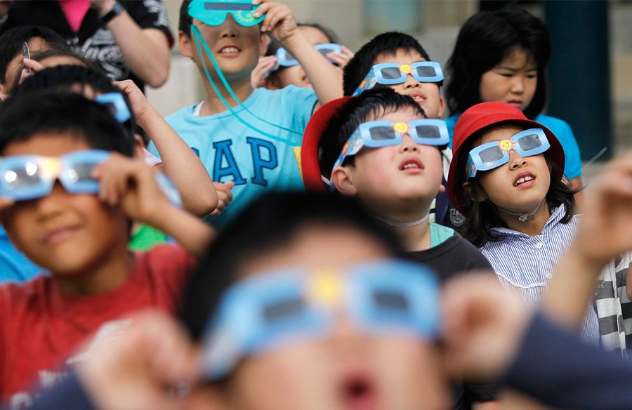 Yesterday, the Moon passed between the Sun and Earth, casting its shadow from China to North America. This was an annular eclipse, where the Moon's apparent diameter is slightly smaller than the Sun's, blocking all but a ring of sunlight. Skywatchers brought out special glasses, welder's masks, and telescopes to safely view this relatively rare event. Some were lucky enough to look down and see overlapping pinhole projections of the eclipse as the sunlight streamed through the leaves of nearby trees. Gathered here, for those who weren't able to see it in person, is a group of images of yesterday's annular eclipse.