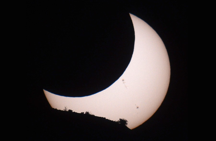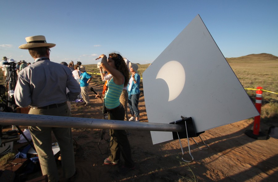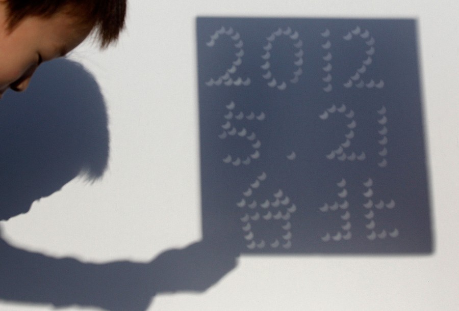 Read moreThe annular solar eclipse is projected onto a white piece of cardboard during a viewing party at the Petroglyph National Monument near Albuquerque, New Mexico, on May 20, 2012. #