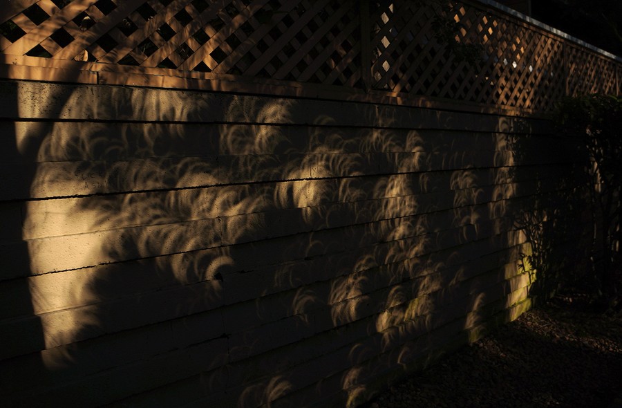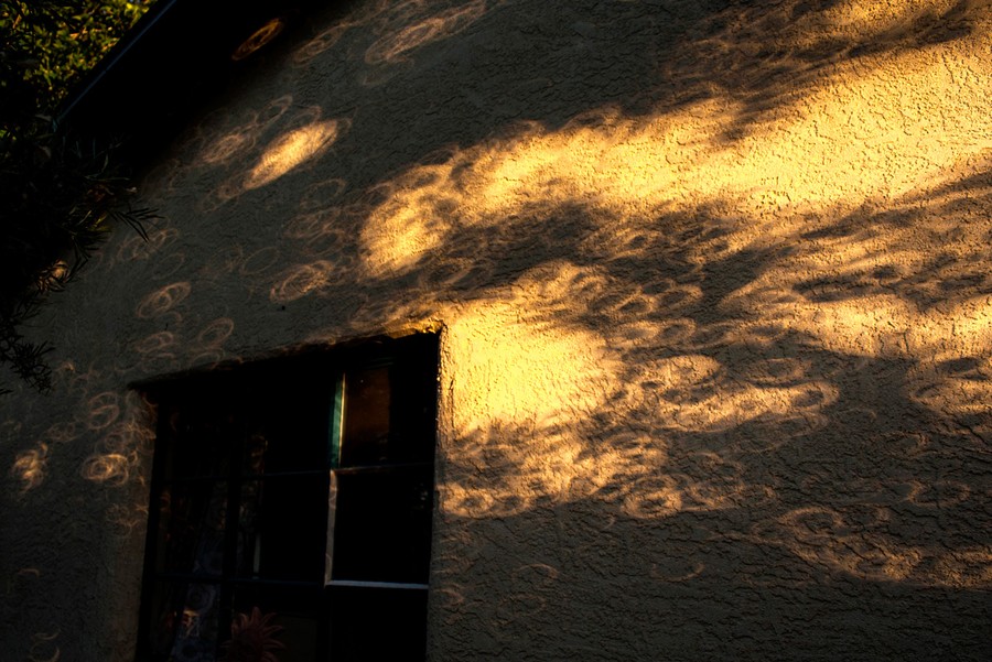 Read moreOverlapping pinhole projections of the full annular eclipse cover the wall of a house on May 20, 2102. Original here. #