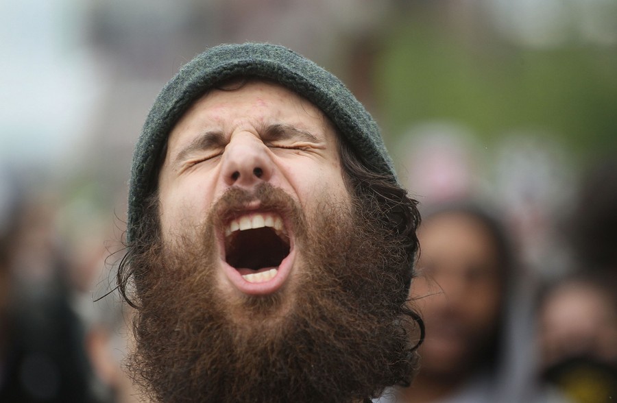 Read moreA demonstrator yells during a May Day march on May 1, 2012 in Chicago, Illinois. About 1,000 people joined in the march which worked its way for about two miles from the city's West side into the Loop. #