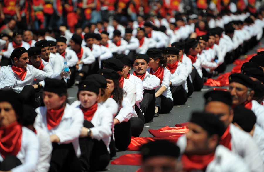 Read moreProtestors sit with red flags during a May Day rally in central Istanbul, on May 1, 2012. Tens of thousands of workers gathered at Taksim square in the heart of Turkey's biggest city Istanbul to celebrate May Day. #
