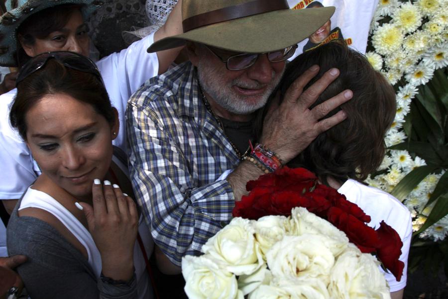 Read morePoet and peace activist Javier Sicilia (center) embraces family members and relatives of his 24-year-old son Juan Francisco Sicilia and his friends at their flower wreath, during Juan's death anniversary in Temixco near Cuernavaca, on March 28, 2012. The bodies of Juan and his friends were discovered on March 28, 2011, in a car in Cuernavaca by the police along with a menacing message from drug cartels. #