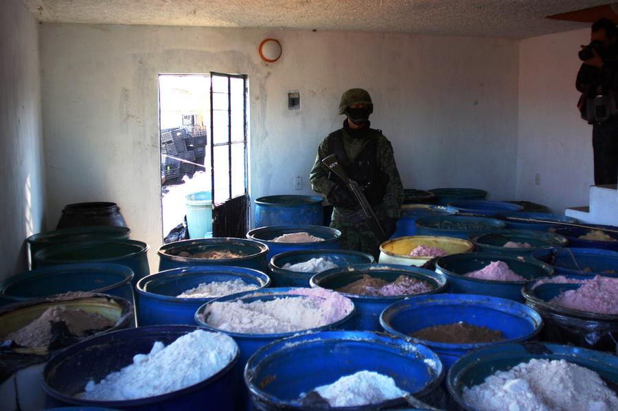 Read moreA soldier stands guard inside a clandestine chemical drug processing laboratory discovered in Tlajomulco de Zuniga, on the outskirts of Guadalajara, Jalisco State, on February 9, 2012. #