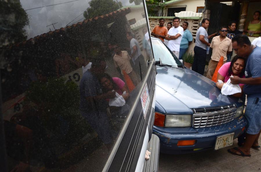 Read moreAn unidentified woman weeps for her relatives at the scene where gunmen attacked a tow truck business in the resort city of Acapulco, on July 8, 2011. Two men and a woman died after unknown gunmen opened fire at the tow truck business. #