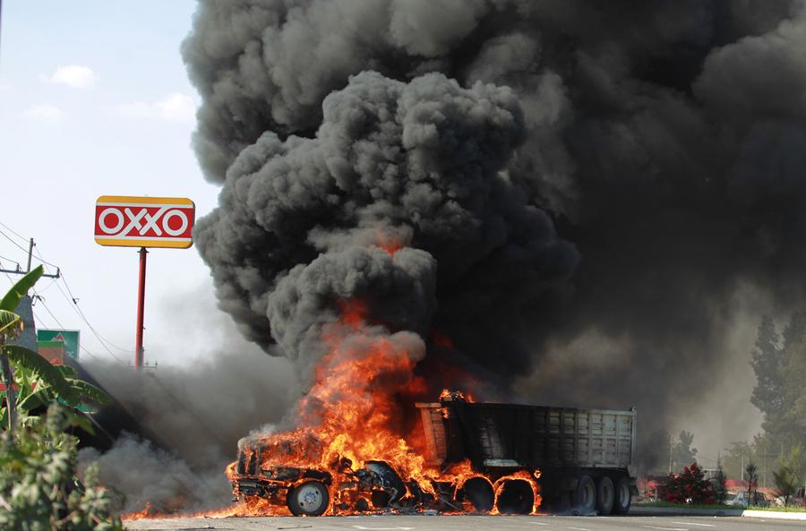 Read moreA truck burns on the road in Guadalajara, Mexico, on March 9, 2012. Drug criminals set 25 city buses and other vehicles on fire in 16 different places, spreading fear throughout Mexico's second-largest city after an army operation, according to officials. #