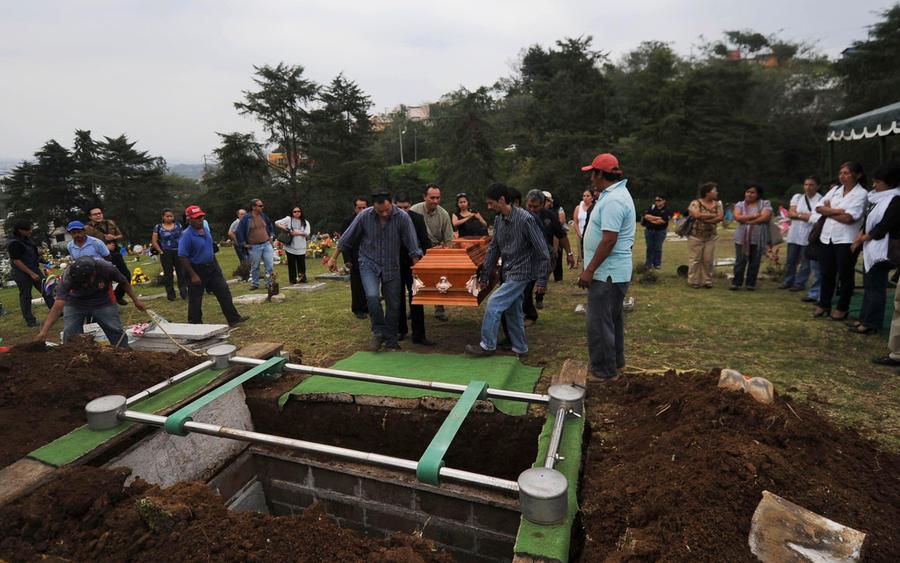 Read moreMorgue workers place a coffin holding an unidentified body into a grave at San Rafael cemetery on the outskirts of the border city of Ciudad Juarez, on December 27, 2011. The bodies of 36 unidentified people, killed in drug-related incidents, were buried after being held in the city morgue for several months without being claimed by relatives. #