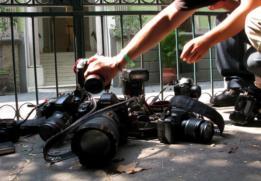 Read morePhotojournalists place their cameras on the floor during a demonstration condemning the alleged murder of fellow journalist Regina Martinez in Mexico City, on April 29, 2012. The Mexican government's human rights commission said Sunday that it will investigate the apparent slaying of Martinez, who often wrote about drug trafficking. #