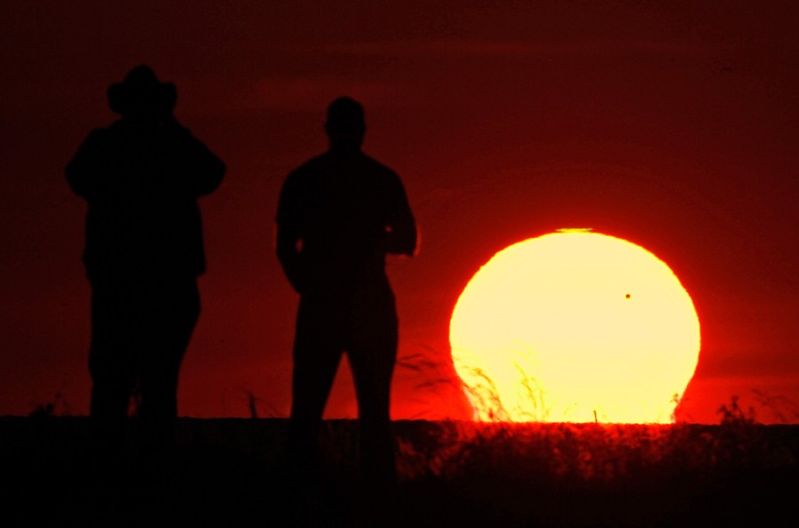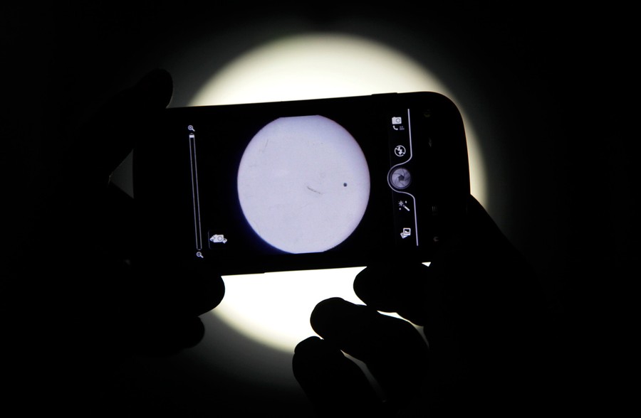 Read moreA visitor photographs a live image of Venus moving across the Sun visible through a coelostat, part of a solar telescope, at the Griffith Observatory in Los Angeles, on June 5, 2012. #