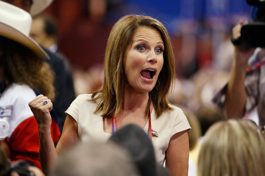 Read moreFormer Republican presidential candidate, Representative Michele Bachmann, from Minnesota, talks to delegates on the floor at the Republican National Convention, on Tuesday, August 28, 2012. #