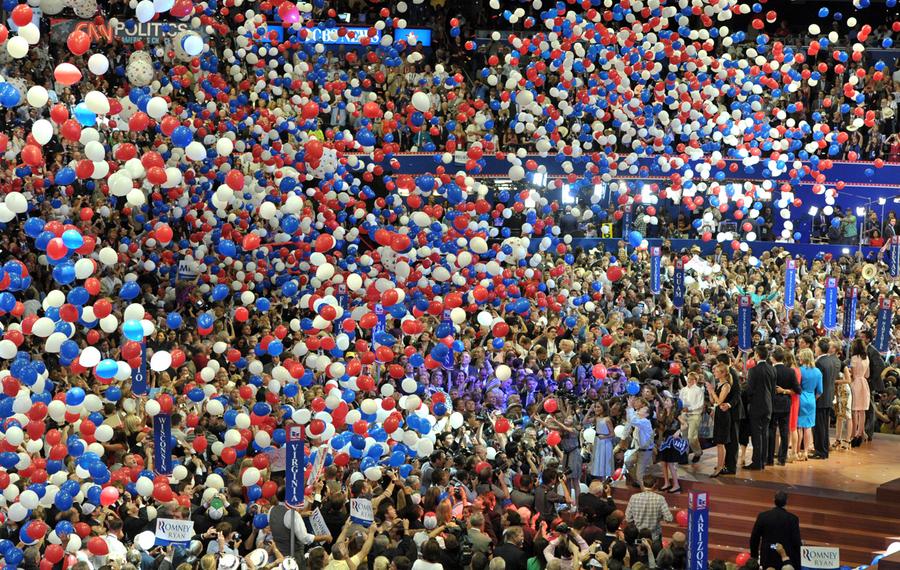 Read moreDelegates celebrate amid thousands of balloons after Mitt Romney accepted the nomination during the final session of the Republican National Convention in Tampa, on August 30, 2012. #