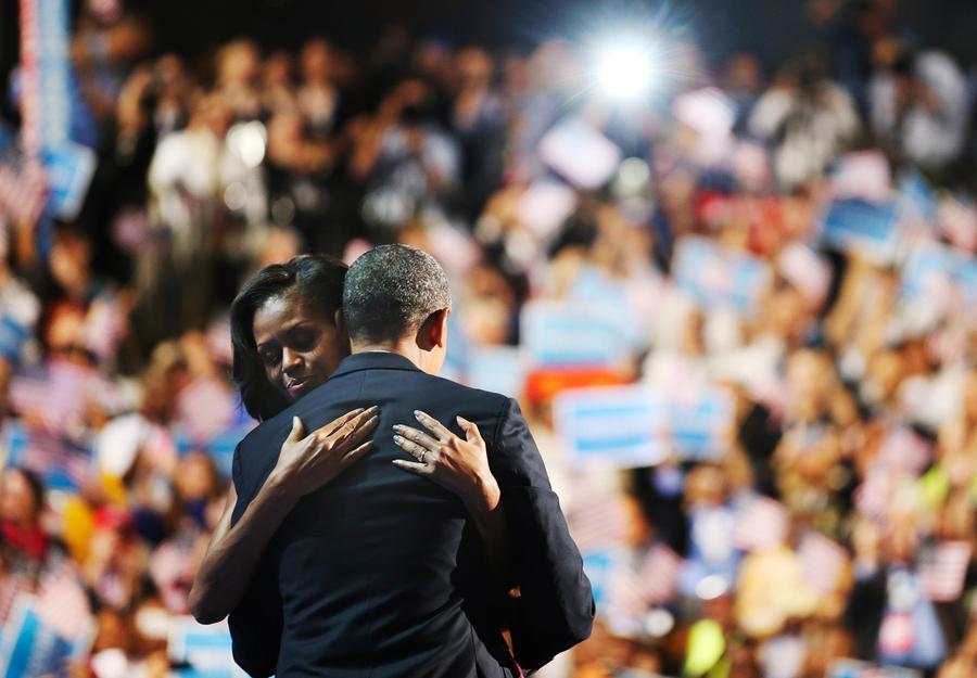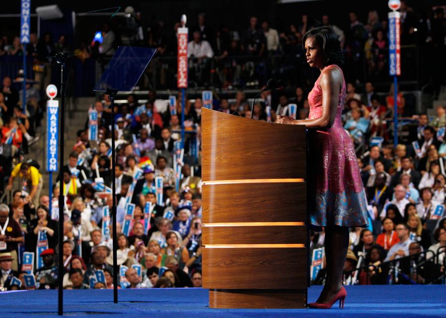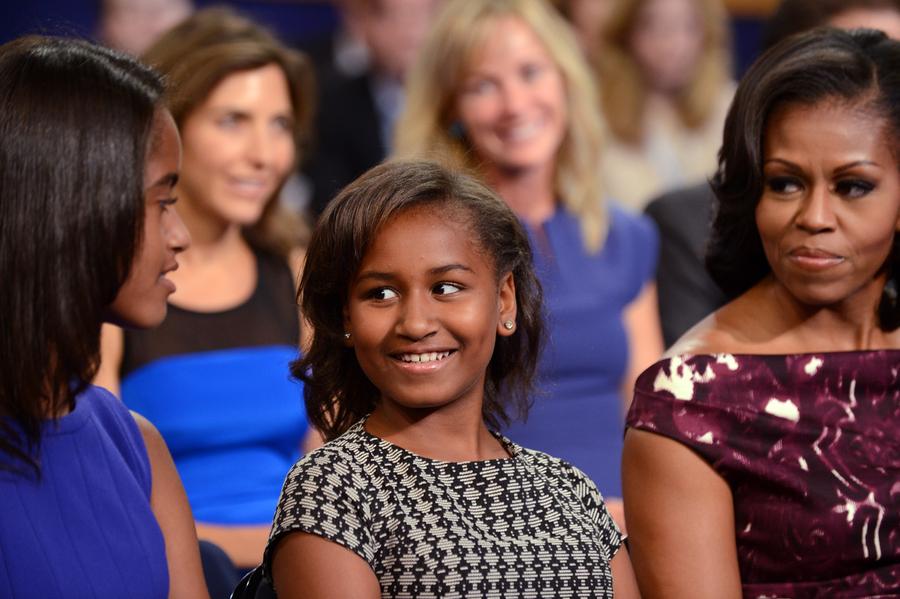 Read moreFirst Lady Michelle Obama looks over at daughters Malia (left) and Sasha (center) as President Barack Obama delivers his acceptance speech in Charlotte, North Carolina, on September 6, 2012. #