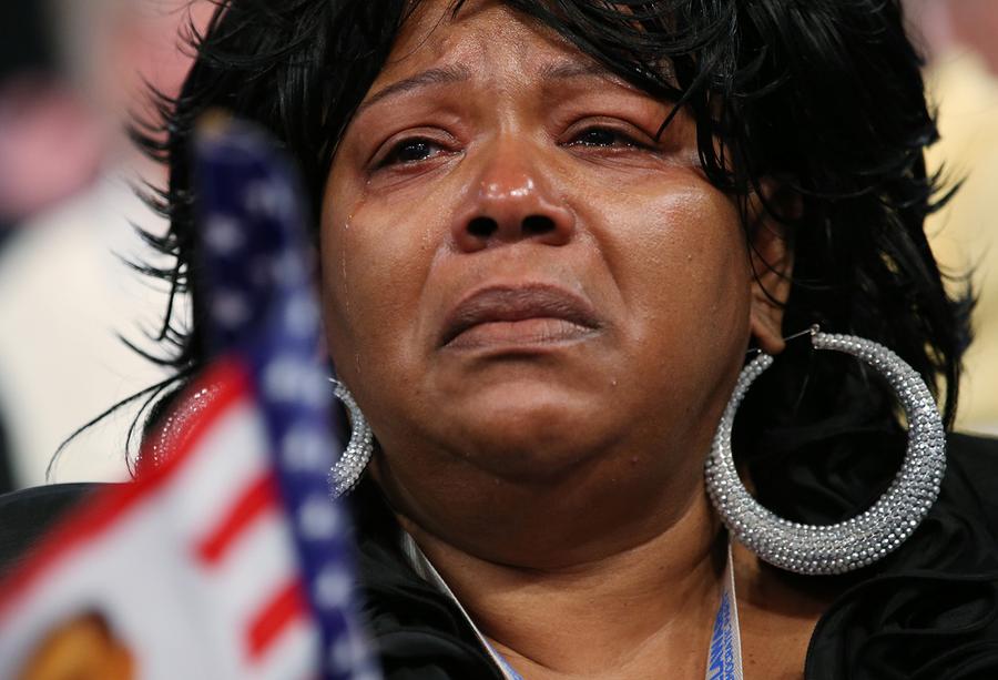 Read moreA woman cries as Chair of the Congressional Black Caucus, U.S. Rep. Emanuel Cleaver, II, of Missouri, speaks at the Time Warner Cable Arena on September 5, 2012 in Charlotte. #