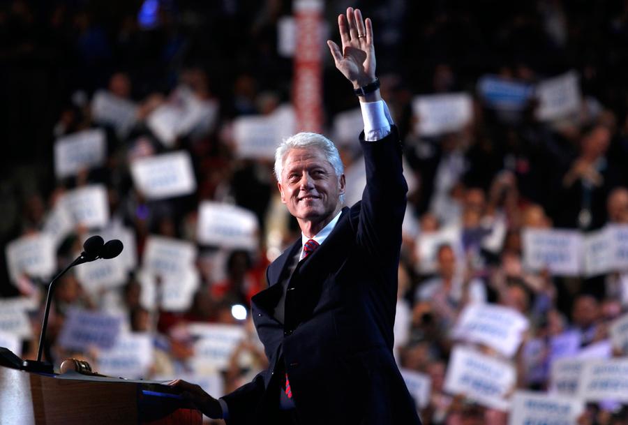 Read moreFormer President Bill Clinton waves to the crowd as he arrives to address the second session of the Democratic National Convention in Charlotte, on September 5, 2012. #