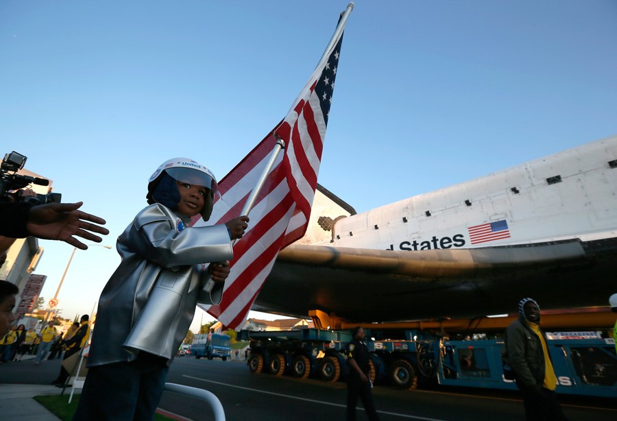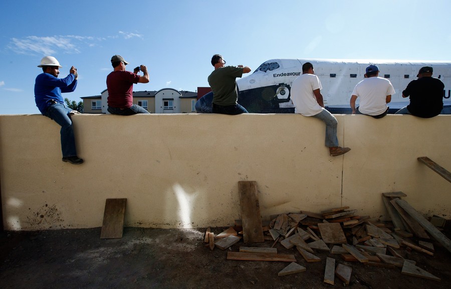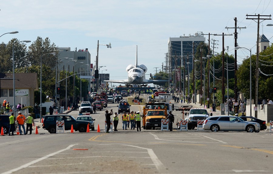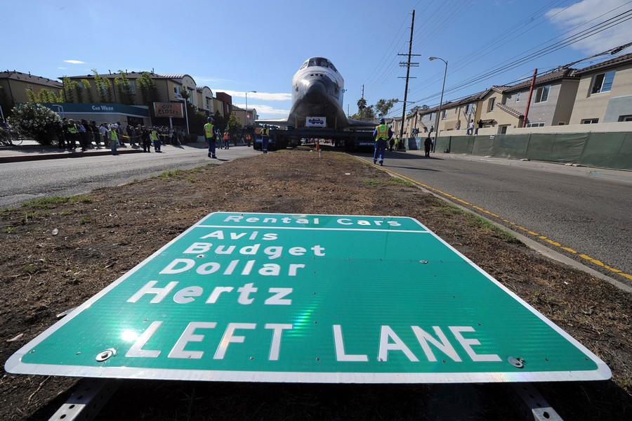 Read moreEndeavour stops in front of Randy's Donuts on Manchester Avenue while being moved from Los Angeles International Airport to its retirement home at the California Science Center in Exposition Park, on October 12, 2012. #