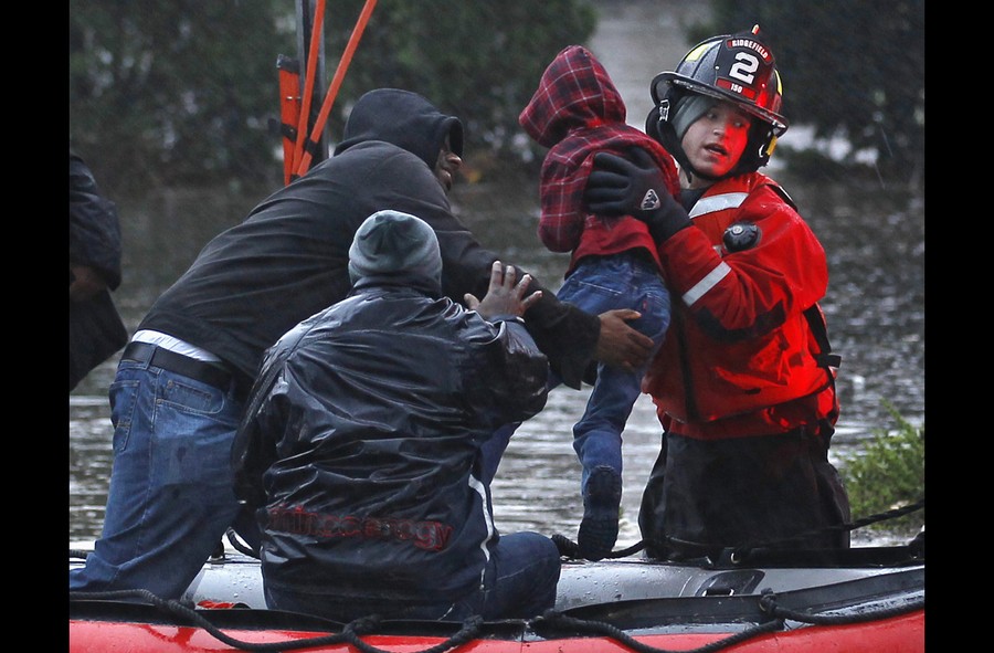 Read moreA young child is rescued by emergency personnel in Little Ferry, New Jersey, on October 30, 2012. Millions of people across the eastern United States awoke on Tuesday to scenes of destruction wrought by monster storm Sandy, which knocked out power to huge swathes of the nation's most densely populated region, swamped New York's subway system and submerged streets in Manhattan's financial district. #