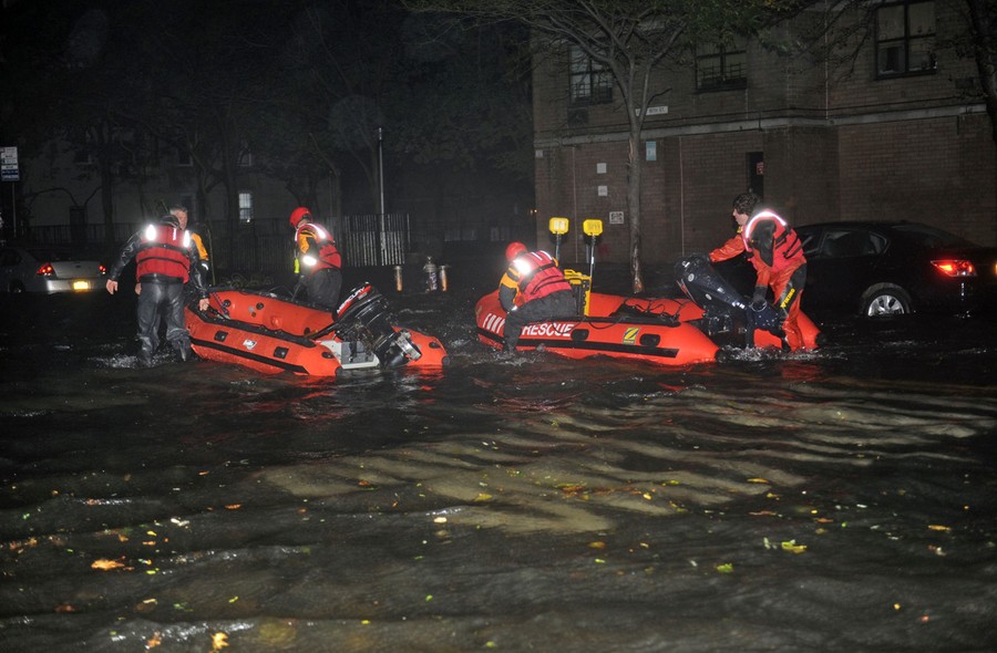 Read moreNew York Fire Department rescue boats, along 14th street, heading toward the East River on a rescue mission in the wake of Hurricane Sandy, on October 29, 2012, in New York. #