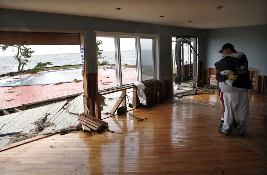Read moreJohnny Adinolfi is comforted by neighbor John Vento, right, as he stands in what was once the living room of his home, in the aftermath of Hurricane Sandy, on October 30, 2012, in Massapequa, New York. #