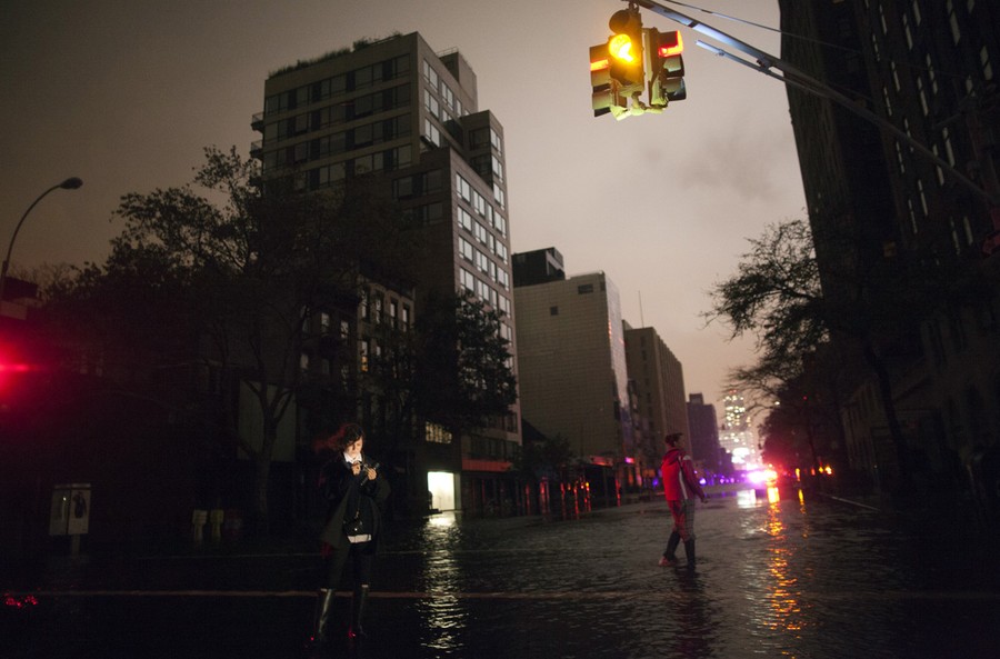 Read moreA vehicle sits submerged on 14th Street near the Consolidated Edison power plant in New York, on October 29, 2012. Sandy knocked out power to at least 3.1 million people, and New York's main utility said large sections of Manhattan had been plunged into darkness by the storm, with 250,000 customers without power as water pressed into the island from three sides, flooding rail yards, subway tracks, tunnels and roads. #