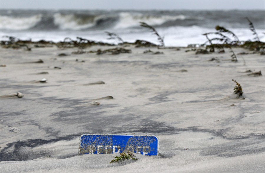 Read moreA "keep off the dunes" sign, buried Tuesday morning in Cape May, New Jersey, after a storm surge from Sandy pushed the Atlantic Ocean over the beach and into the streets, on October 29, 2012. #