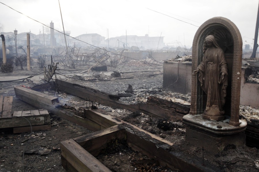 Read moreDamage caused by a fire at Breezy Point is shown in the New York City borough of Queens, on October 30, 2012. The fire destroyed between 80 and 100 houses Monday night in the flooded neighborhood. More than 190 firefighters have contained the six-alarm blaze fire, but they are still fighting some pockets of fire. #