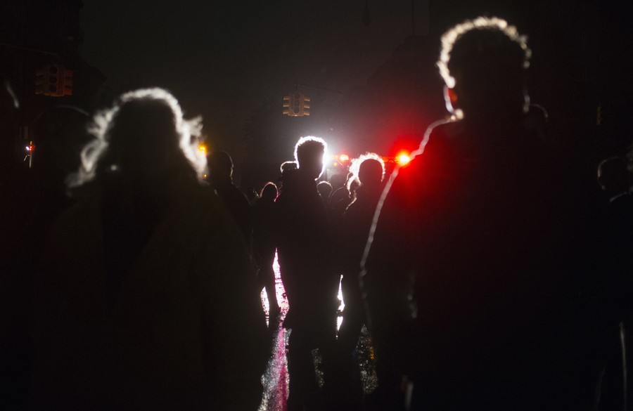 Read moreResidents, lit by police vehicles, stand outside their homes during a power outage in Lower Manhattan, on October 29, 2012. New York power company Consolidated Edison said on Monday that it had shut off power to part of Lower Manhattan to protect electrical equipment and to allow for quicker restoration after Hurricane Sandy passes. #