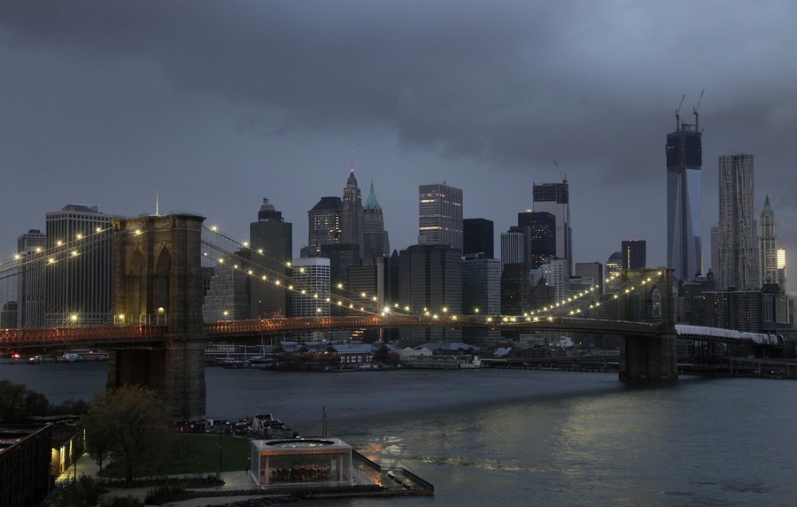 Read moreThe lights on the Brooklyn Bridge stand in contrast to the lower Manhattan skyline which has lost its electrical supply, early on Tuesday, October 30, 2012, after megastorm Sandy swept through New York. A record storm surge that was higher than predicted along with high winds damaged the electrical system and plunged millions of people into darkness. #