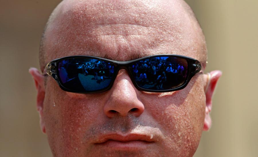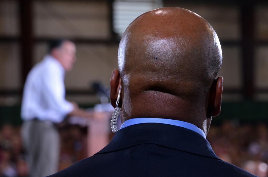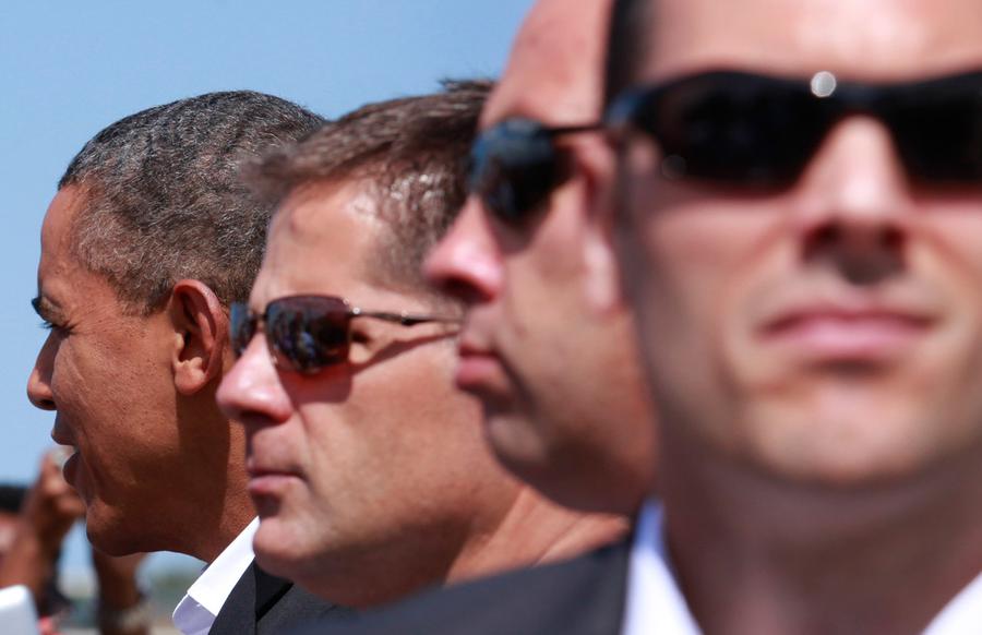 Read moreA Secret Service agent perspires as he keeps watch on Barack Obama during a campaign event at Carnegie Mellon University in Pittsburgh, Pennsylvania, on July 6, 2012. #