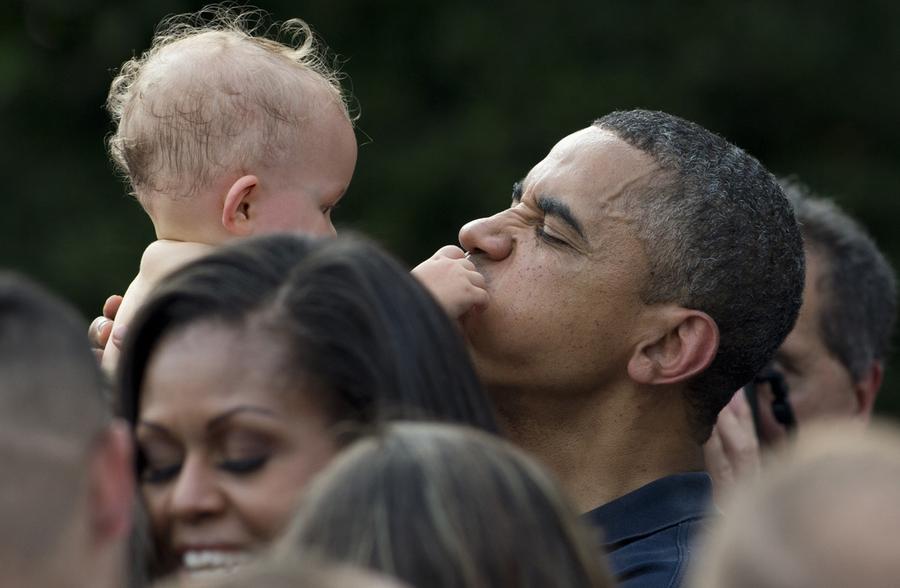 Read moreBarack Obama holds a baby during an Independence Day celebration including a barbeque, concert and a view of fireworks for military members and their families and members of the administration the South Lawn of the White House in Washington, DC, on July 4, 2012. #