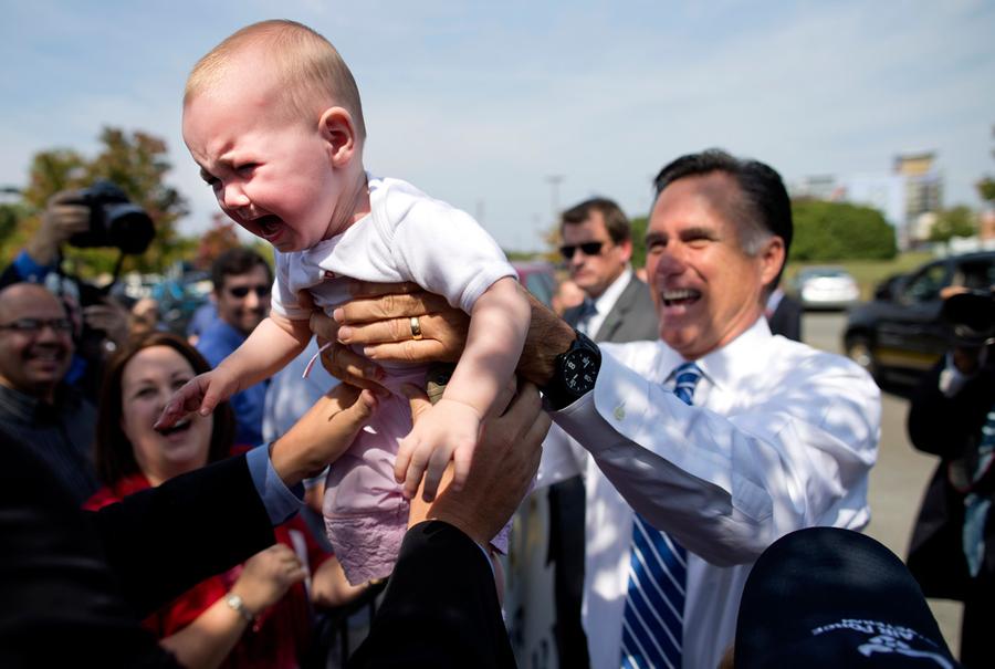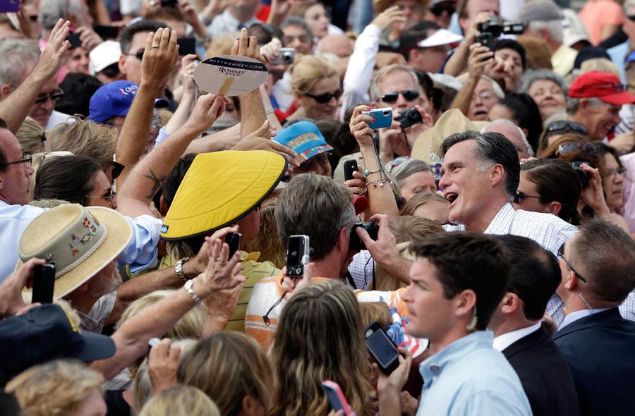 Tonight is the first of four 2012 presidential debates, with only 34 days left until the election. Both candidates have been campaigning for many months, attending rallies and fundraisers, pressing the flesh, remaining constantly on message. Their political philosophies may differ, but the process of successfully campaigning is remarkably similar across parties, as evidenced by this series of photos comparing Romney and Obama events out on the campaign trail.