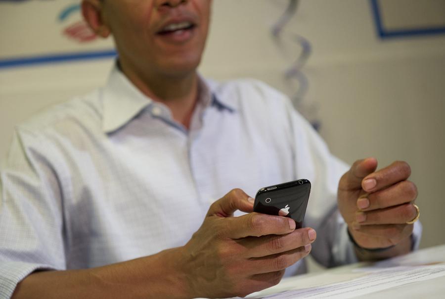 Read moreBarack Obama uses an iPhone to make a phone call to a supporter during a visit to the Obama for American campaign field office in Port St. Lucie, Florida, on September 9, 2012. #