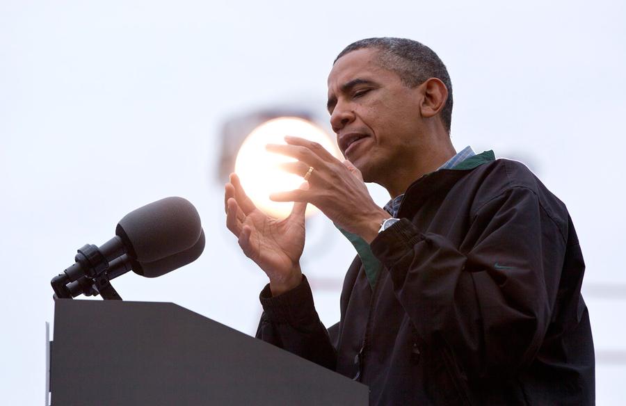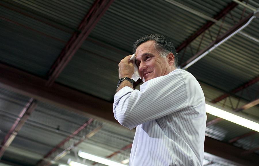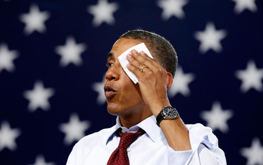 Read moreBarack Obama wipes perspiration from his face as he speaks in a sweltering gym during a campaign stop at Windham High School in Windham, New Hampshire, on August 18, 2012. #