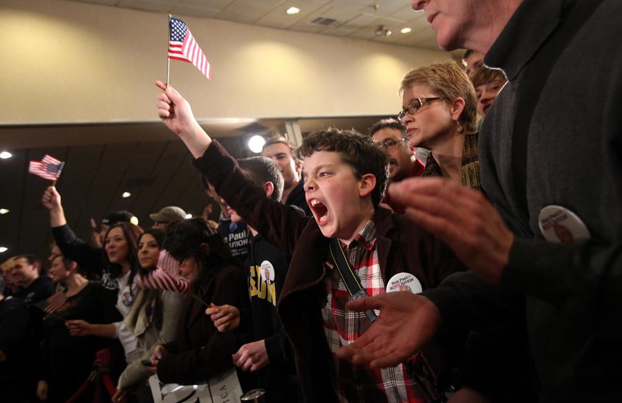 Read moreA young supporter of Republican presidential candidate U.S. Congressman Ron Paul celebrates at Paul's New Hampshire primary night rally in Manchester, New Hampshire, on January 10, 2012. #