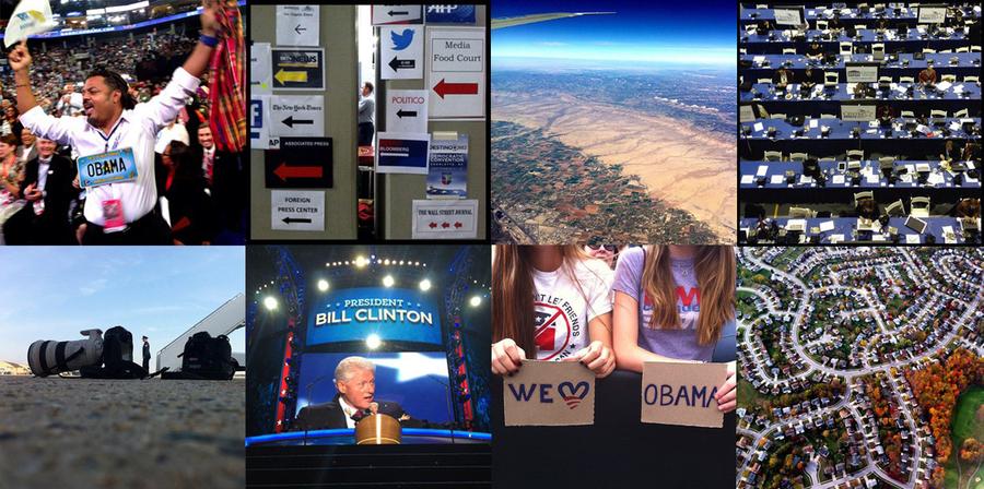 Read moreAssociated Press Instagram photos from the campaign trail, Obama/Biden edition: Delegate Richard Rios from Virgin Islands dances at DNC Charlotte / Media center at DNC. / Flying west on Air Force One. / The media center at Center College before the start of the VP debate. / Air Force One tarmac with cameras. / Bill Clinton front and center DNC Charlotte. / Columbus Ohio with President Obama. / Approaching Columbus, Ohio on Air Force One. #