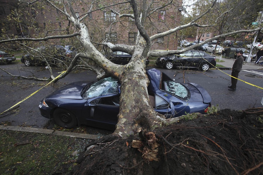 As the remnants of Hurricane Sandy dissipate over northern Canada, the full scale of the damage left in her wake is becoming apparent. At least 56 people in the U.S. were killed and another 67 in the Caribbean. Cost estimates have ranged as high as $60 billion so far. More than 4 million people remain without power, as crews from across the country converge on the Northeast to restore electricity. Hard-hit sections of New York and New Jersey have begun cleanup, with some restoration of transit and services. The morning commute into Manhattan today was chaotic, as many New Yorkers attempted to return to work by car -- many were turned back due to an order that inbound cars carry at least three people. Collected here are images of Sandy's trail of destruction in New York and New Jersey. See also the earlier entry: Hurricane Sandy: After Landfall.