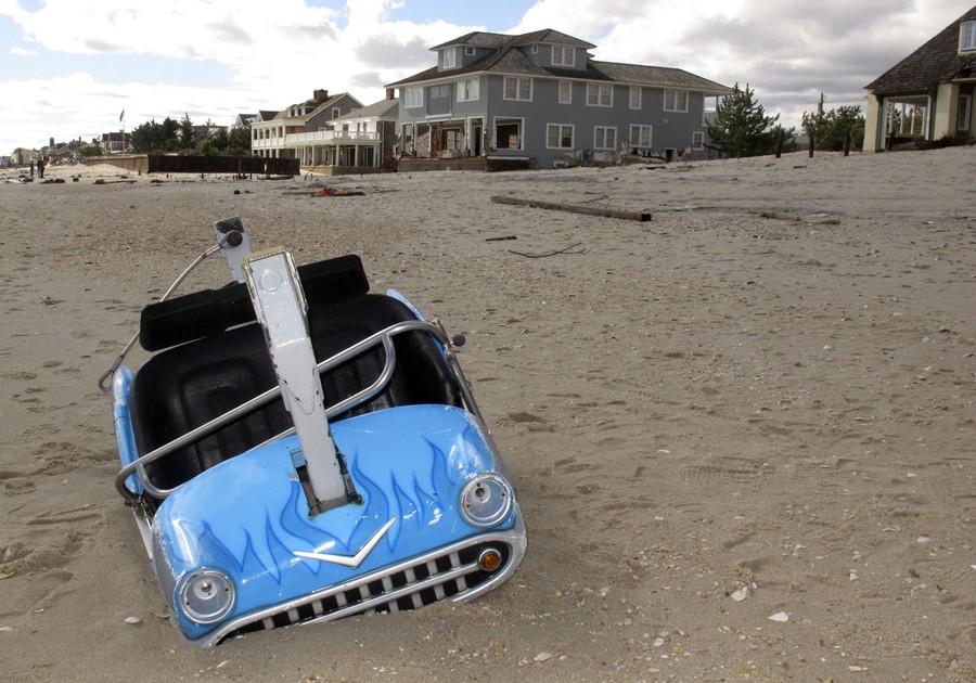 Read moreA car from a kiddie ride from the Seaside Heights boardwalk lies half buried in the sand of Mantoloking, New Jersey, on Wednesday, October 31, 2012. The car was carried at least 8 miles by the ocean from the amusement pier that was destroyed in superstorm Sandy. Most of the multimillion-dollar homes along this old-money stretch of the Jersey shore were seriously damaged by pounding surf, wild wind and, in some cases, fire from ruptured gas lines. #