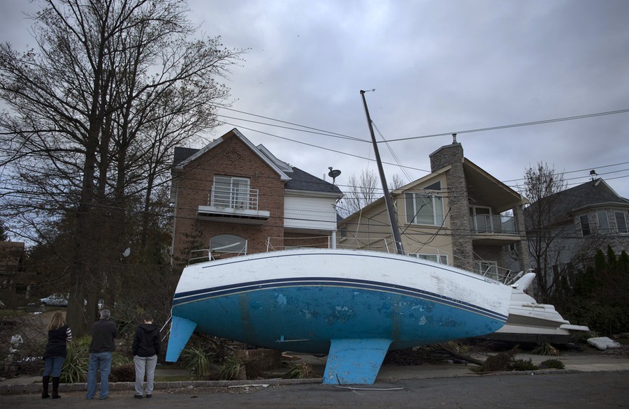 Read morePeople examine the wreckage of a boat washed ashore in Great Kills, Staten Island, following Hurricane Sandy in New York, on October 31, 2012. The boats settled on Mansion Avenue after the storm surge from the hurricane saw waters rise waters 15 feet in the area. #