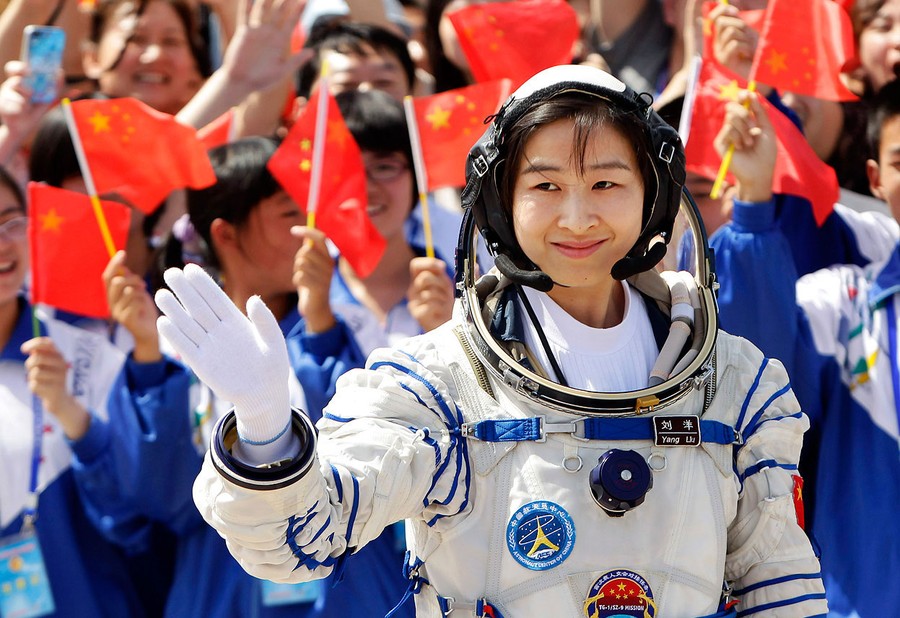 Read moreLiu Yang, China's first female astronaut, waves during a departure ceremony at Jiuquan Satellite Launch Center, Gansu province, on June 16, 2012. China sent its first woman taikonaut into outer space, prompting a surge of national pride as the rising power takes its latest step towards putting a space station in orbit within the decade. Liu, a 33-year-old fighter pilot, joined two other taikonauts aboard the Shenzhou 9 spacecraft when it lifted off from a remote Gobi Desert launch site. #