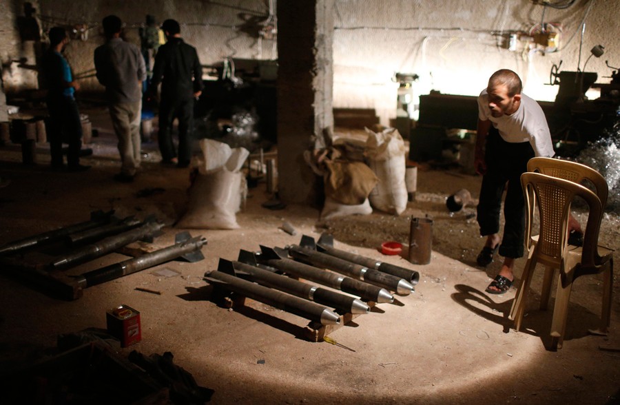 Nearly two years after the start of Syria's popular uprising, the conflict has evolved into a slow-moving, brutal civil war with many players and no clear end in sight. Multiple rebel groups across the country continue to fight President Bashar al-Assad's forces, using any weapons they can get their hands on. While the rebels are using many modern tools, they've also come up with their own makeshift solutions. In these weapons workshops, anti-aircraft guns are welded to pickup trucks and armor shields are attached to machine guns and cars. Mortar shell nose cones are turned on lathes and explosives are mixed by hand. Homemade grenades are launched by jury-rigged shotguns or giant slingshots in the urban battlefields of Aleppo and Damascus. Gathered here are a few examples of the hand-built munitions of the Syrian rebels.