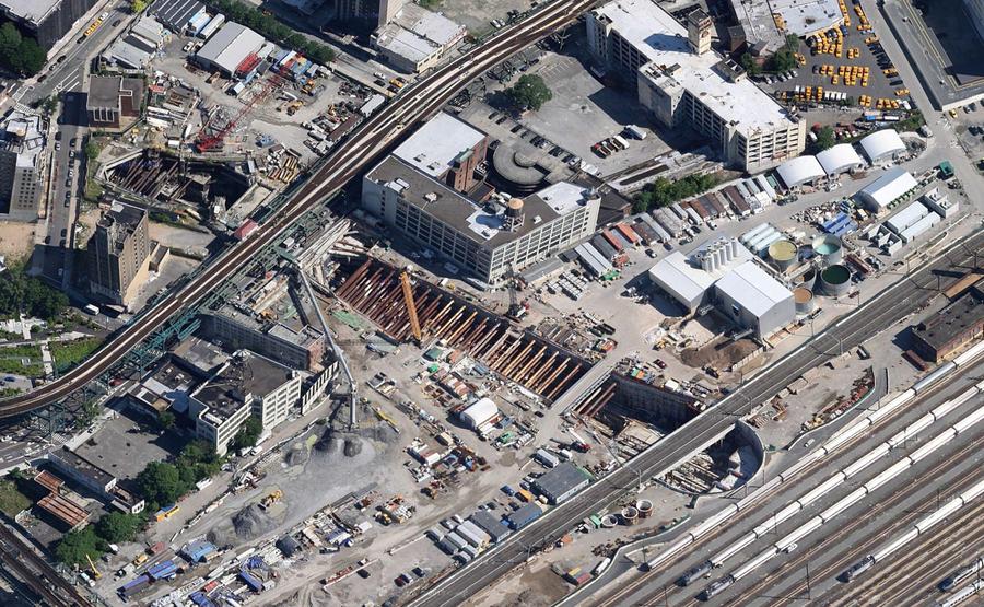 Read moreAn overhead view of the construction pit and tunnel access chamber, in Sunnyside, Queens, near Queens Plaza station. At lower left is the muck staging area for material removed while tunneling. See this view on Google Maps. #