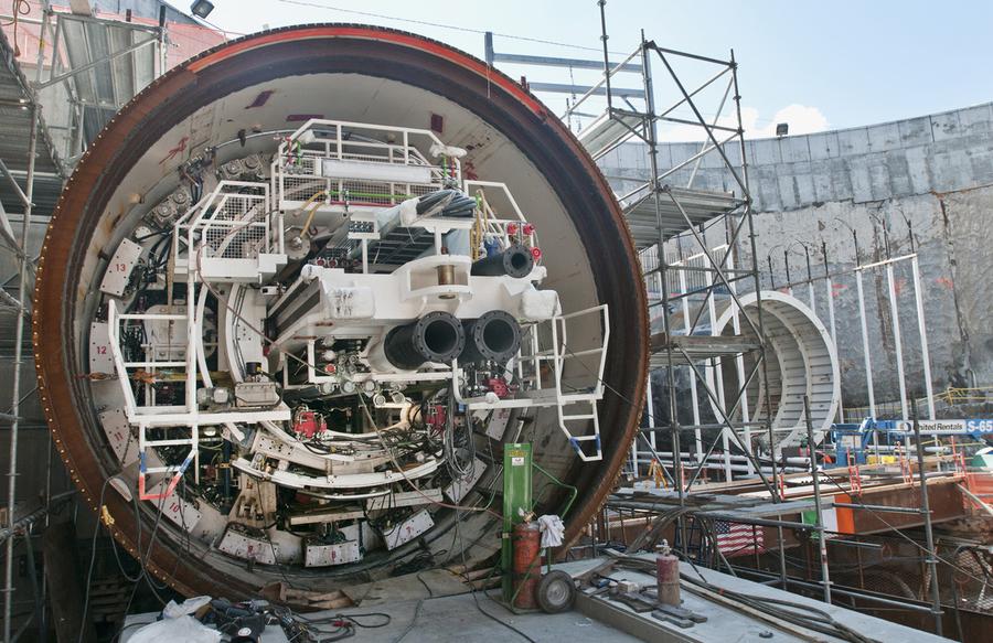 A huge public works project is currently under construction in New York City, connecting Long Island to Manhattan's East Side. Deep underground, rail tunnels are extending from Sunnyside, Queens, to a new Long Island Rail Road terminal being excavated beneath Grand Central Terminal. Construction began in 2007, with an estimated cost of $6.3 billion and completion date of 2013. Since then, the cost estimate has been raised to $8.4 billion, and the completion date moved back to 2019. When finished, the line will accommodate 24 trains per hour at peak traffic, cutting down on commute times from Long Island, and opening up access to John F. Kennedy International Airport from Manhattan's East Side. Collected here are images of the progress to date, deep beneath Queens and Manhattan.
