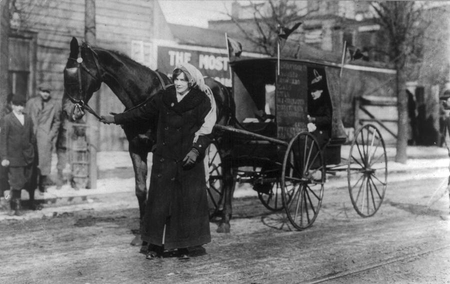 Read moreElizabeth Freeman of the New York State Suffrage Association, with horse and carriage, on her way to join the March 3, 1913 suffrage march in Washington, District of Columbia, #