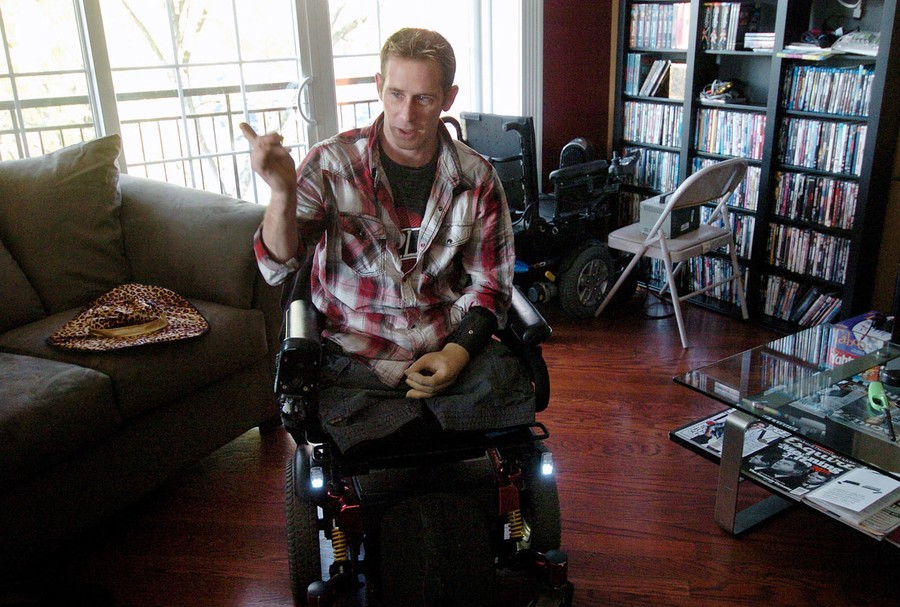 Read moreBryan Anderson talks about his new book titled "No Turning Back," at his home in Rolling Meadows, Illinois, on October 31, 2011. His story details enlisting with the Army and receiving a deployment date of September 11, 2001, serving two tours in Iraq as a sergeant in the military police, driving over a roadside bomb in his Humvee in October 2005, and recovering for 13 months at Walter Reed Army Medical Center, where he was one of the few triple amputees to survive. #