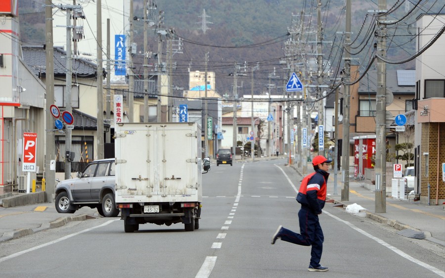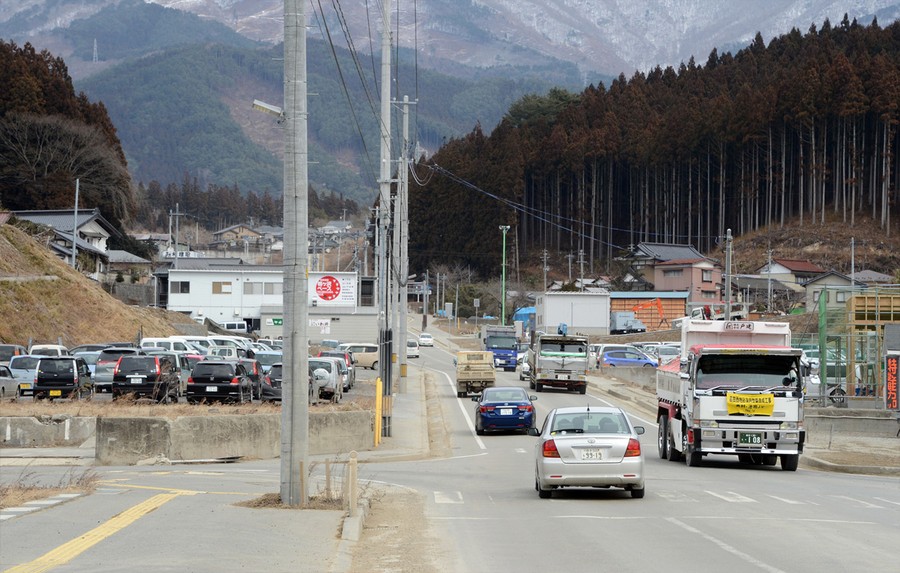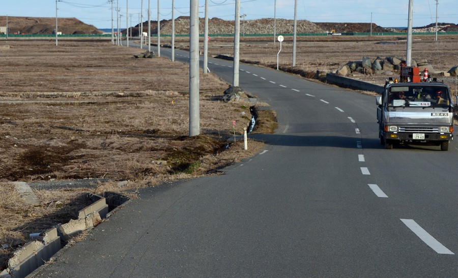 Read moreOn March 12, 2011, people evacuate down a road flooded by the tsunami in the city of Ishinomaki in Miyagi prefecture, click to fade the image and show the same road on February 22, 2013. [click image to view transition - javascript required] #