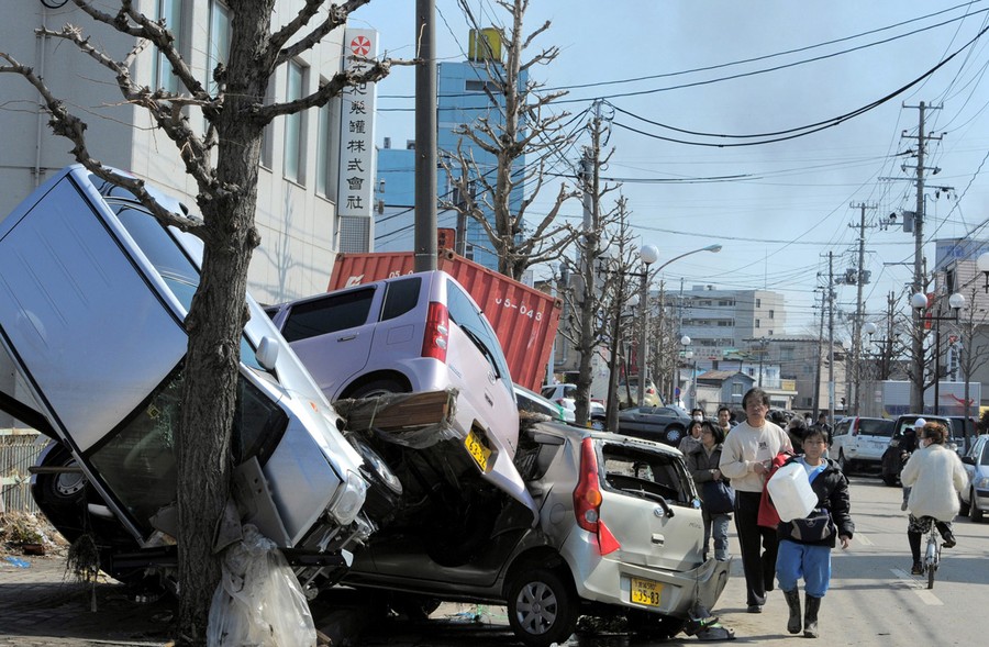 Read moreResidents walk past damaged cars on a street in a tsunami-damaged area of Tagajo, Miyagi prefecture on March 13, 2011, and (click to fade) the same street on February 21, 2013. [click image to view transition - javascript required] #