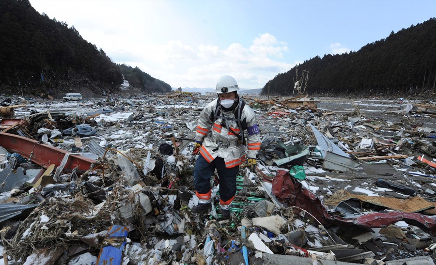 Read moreA rescue worker walks through rubble in the tsunami hit area of Minamisanriku, Miyagi prefecture on March 18, 2011, and (click to fade) the same area on February 20, 2013. [click image to view transition - javascript required] #